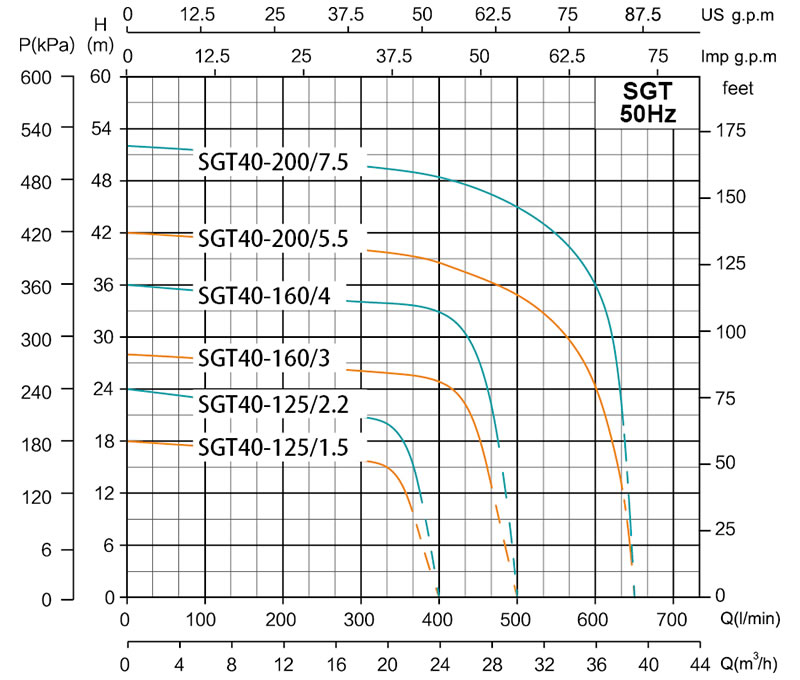 Limites d'application de la pompe centrifuge SGT